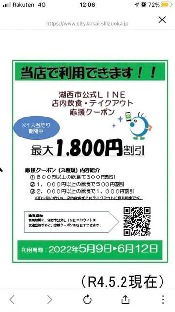 以前も利用していたのですが、湖西市のLINEクーポンを利用するため、久しぶりに来店。
