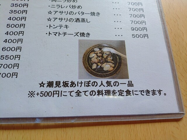 すべての定食に貝汁が付いてきます。レギュラーメニュー以外に黒板メニューも