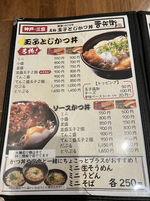 玉子とじかつ丼背ロースてんこ盛り玉子2個とミニうどん