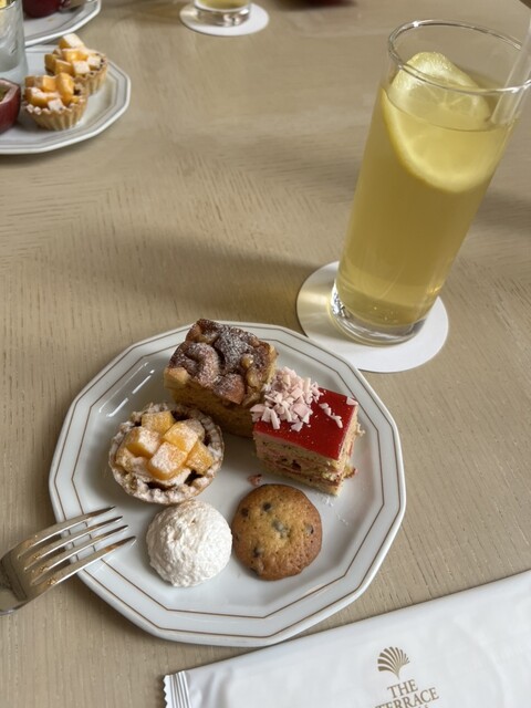 昼にはカクテル、ミニケーキ、クッキーなどもあります。