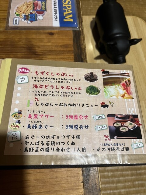 家族4人でしたので、沖縄在来豚の純血統「島黒アグー」と究極のハイブリッドブランド豚「やんばる島豚あぐー」を2人前ずつ注文しました。この豚肉のこだわりもこのお店の特徴です。
