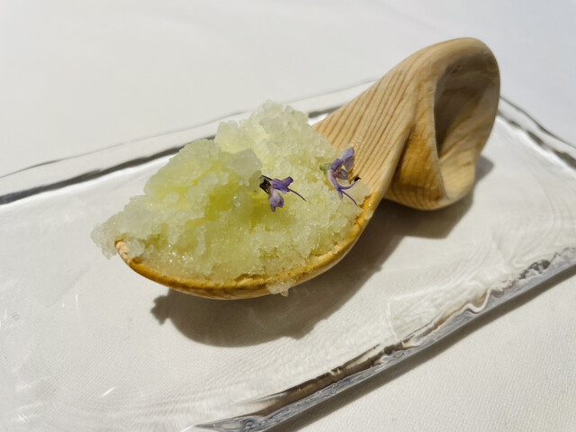 お店の畑でとれたシークワーサーとローズマリーから成る爽やかで清涼感のある味わいが美味しいシャーベット!
