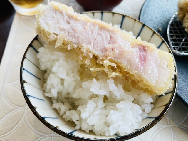 こちらのお店では宮城県牡鹿の「幻の豚」のとんかつをいただけます。全国で週に八頭しか出荷しない幻の豚で作るとんかつ。その中でも特上ヒレは一頭から数人前しか作られない超希少部位のようです。