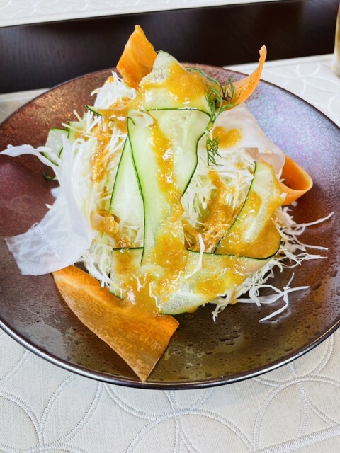 店主さんが自ら選んだ厳選野菜で作ったサラダや自家製ドレッシングもおいしいです。ドレッシングは数種類の野菜・果物などをブレンドしたそうで野菜の旨味が伝わるドレッシング!このおいしいサラダもご飯同様、無料でおかわりできますので、お腹の満足度がとても高いです(^.^)