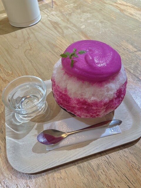 かき氷は8種類程あったと思います。どれもあまりに美しくて美味しそうで、何を食べようか本当に悩みましたが、今回は紫蘇のかき氷をいただくことに。