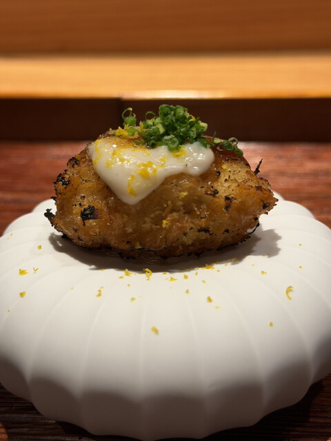 香箱蟹の春巻きは、メスガニ解禁直後ならではの濃い旨みが詰まり、脚の甘みと生姜酢の香りがふわりと広がりまふ。季節の息遣いをそのまま閉じ込めた一皿でした。