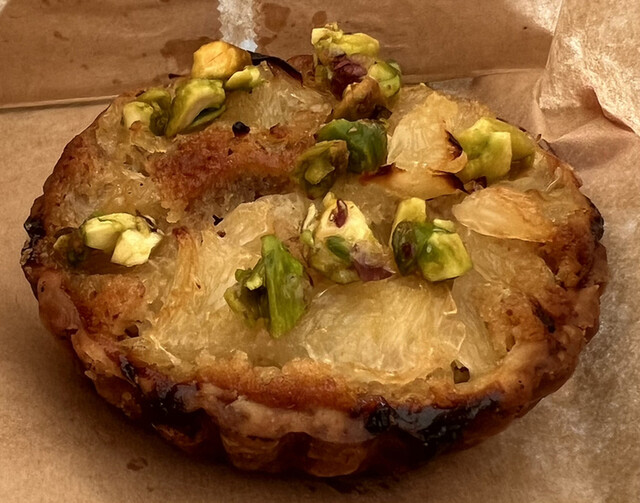 中はふんわりとしている。これがアーモンドクリームという事になるが、荒く砕かれた状態の様だが豆の食感は無くとても柔らか。ひき肉?と思ってしまう様なコクがあり、旨味のある味わい。
