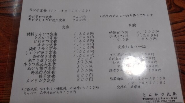 仁亭(郡山、郡山富田、安積永盛/食堂、洋食、とんかつ)