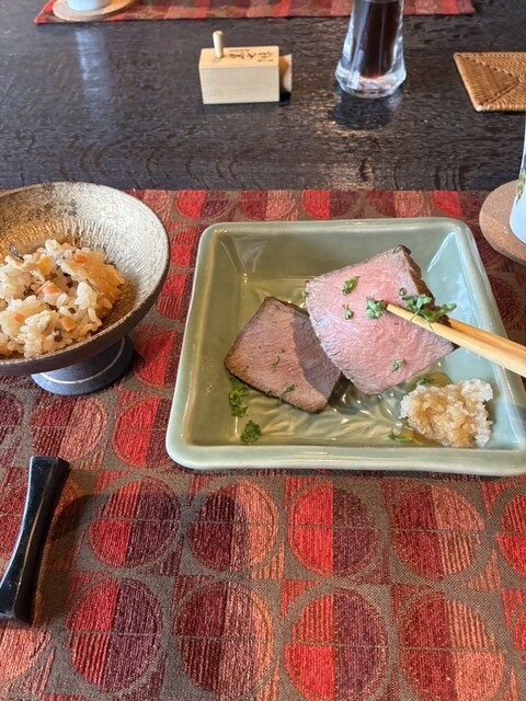 こちらは到着までも田んぼの真ん中を抜けたりとワクワクします。一軒の和モダンなお店は入ったら床暖房でポカポカでなんとも居心地が良い。全室個室で、景色が良いんです。ゆったりとした時間を過ごせます。今回はお正月の案内を頂いていた特別サービスメニューで。それでも天ぷらや、ローストビーフに炊き込みごはんにだし巻き卵なとちょこちょこしっかり出していただきました✨
