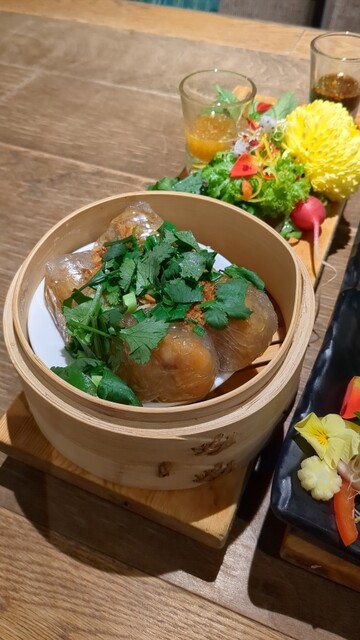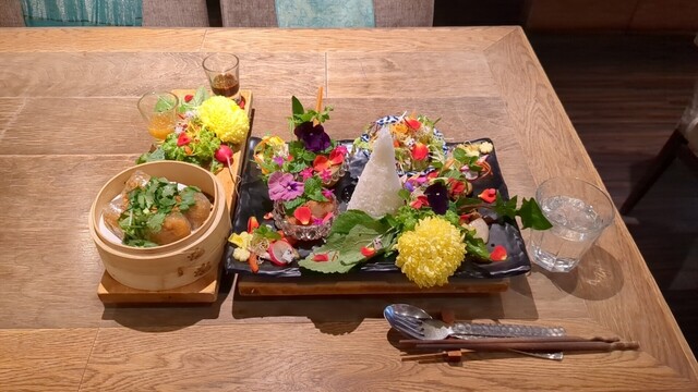 タイのリゾートでいただいているようなお料理、エディブルフラワーが華やかに