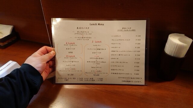 と用意されてまして、今日は単品パスタをBセットに出来るセットを注文しました。