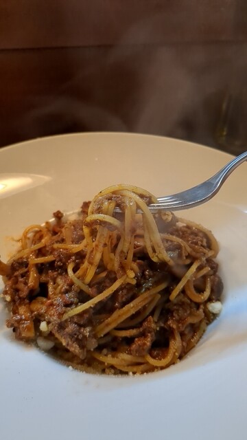 「ボロネーゼパスタ」は、びっくりするほど肉々しいミートソースがパスタに絡められて提供されます。