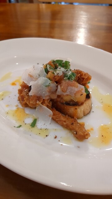 ただ生シラスをのせてあるだけではなく、ニンニク、トマトを塗り、オリーブ油に生シラス、レッドペッパーとめちゃくちゃ美味しかったです!
