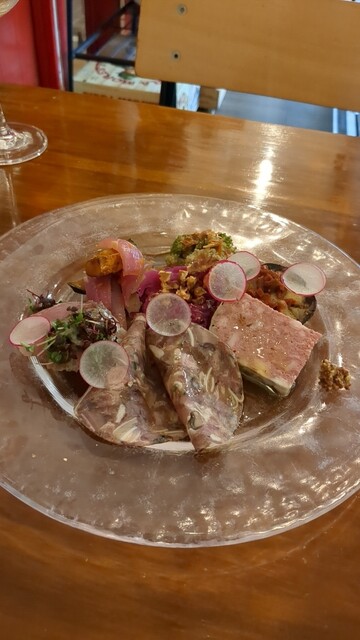 その日用意された前菜各種が野菜やマリネ、自家製ハム等が盛りだくさんでめっちゃ美味しい