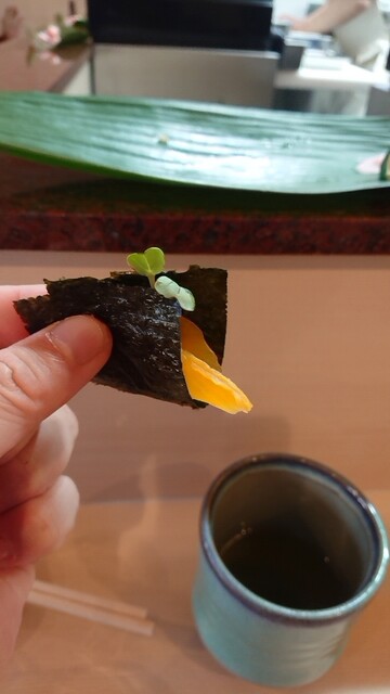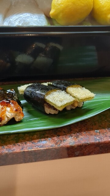 この場でどういうお寿司かのカラクリを解くことはしませんが食べたらわかります!ポン酢があったかかっていてすごくさっぱりいただけるオススメお寿司です!
