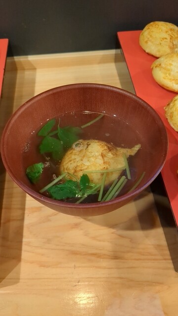 明石焼きの具材が貝柱になった商品なのですが、今の時期は不定期にタコも出てくる場合がありますよ。