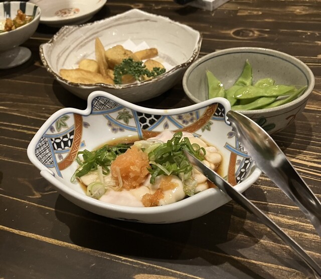 白子のユッケと名古屋コーチンのレバーのたたき、蟹味噌グラタン、金目鯛の煮付け!美味しいかったー!