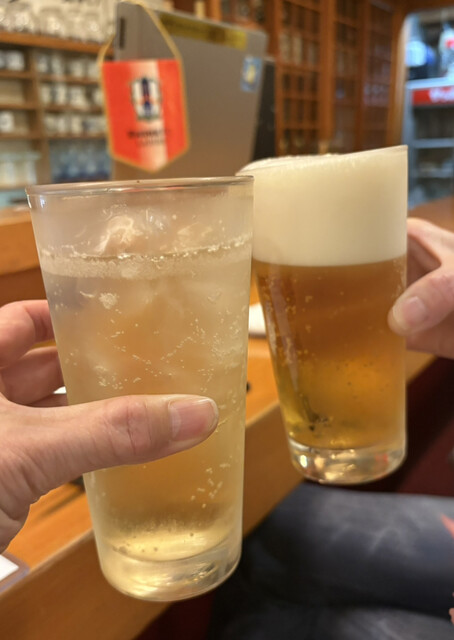 まずはハイボールと生ビールで乾杯♪(*^^)o∀*∀o(^^*)♪
