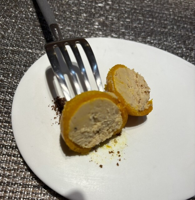 みかんのゼリーの中は濃厚なフォアグラ✨️