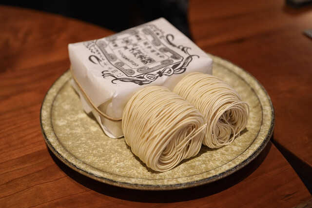 直前から打ち始めたという蕎麦は、蕎麦粉の風味が驚くほど濃厚です。そしてつけ汁は、大根を煮出した出汁を使用したもので、オイルなどが加わり洋風な香りが特徴的。濃厚で旨みが強く、蕎麦粉の風味にも負けない風味です。これに浸していただく蕎麦は、喉越しもツルッと良く、たまらない味わいでした。