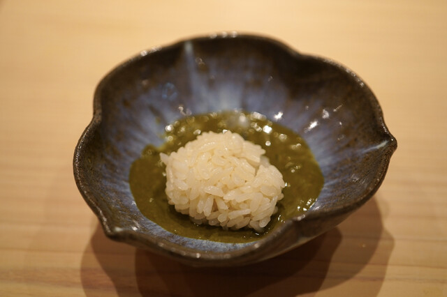 鮑を食べ終えると一握りのシャリが追加され、リゾット風にしていただきます。