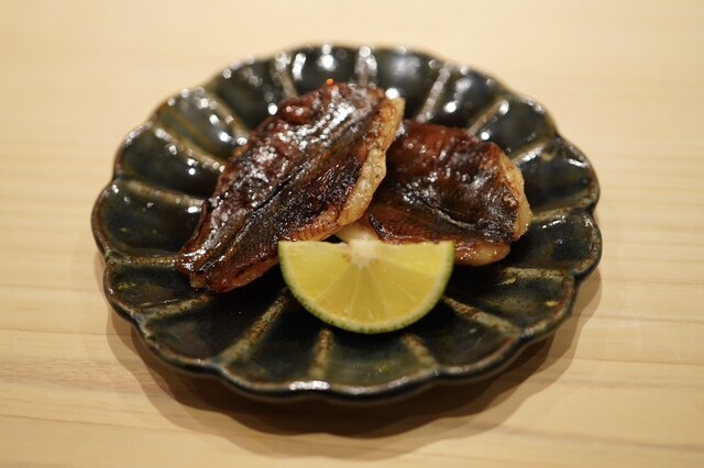 熱々な穴子。表面はカリッと焼かれていて香ばしさがとても好き。身はフワフワで甘いタレと相まって美味しいです。