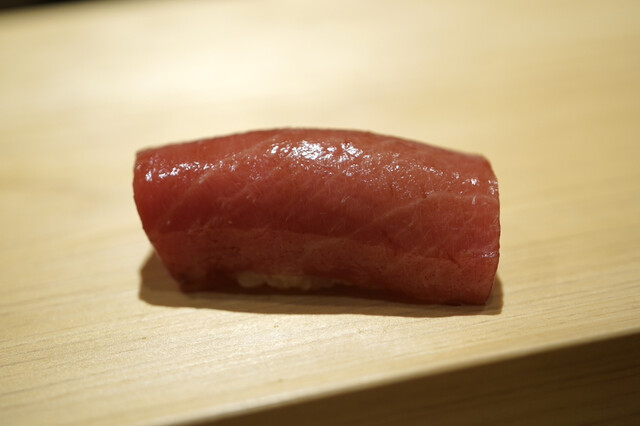 静岡 下田須崎の鮪の赤身を4分間漬けたもので、非常にしっとりとした食感で、赤身と漬けが一体となり、バランスの良い旨味が際立ちます。