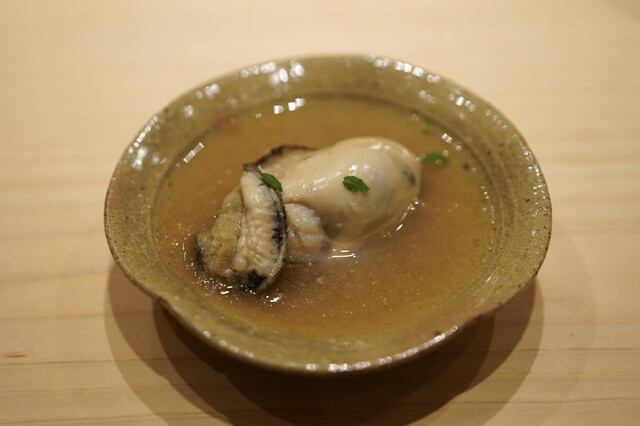 大きな牡蠣のみぞれ煮。牡蠣の鮮度はもちろん、みぞれ煮の優しい出汁の味わいが絶妙です。