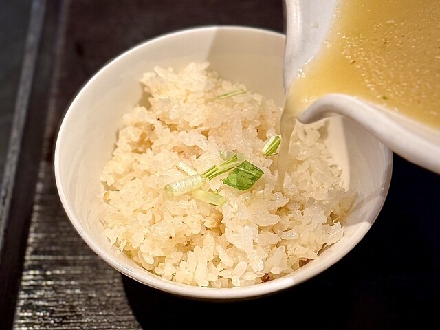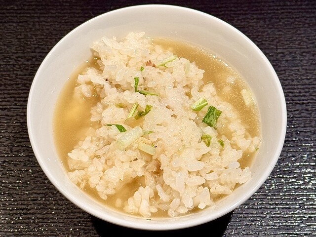 こちらのお店はラーメンをいただいた後にそのスープをご飯に加えて雑炊で楽しめるいただき方を提供している。
