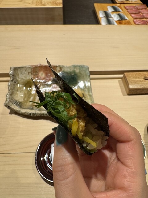 約一年ぶりの2度目の訪問でした。出汁のお味が感じられる、つまみとお寿司でとても美味しくいただくことができました。毛蟹やホタテの卵巣など、北海道らしさの感じられるつまみが豊富です。また、エシャロットの乗ったマグロがインパクトがあり、とても美味しかったです。日本酒も、あまり見かけないものが揃っており、こだわりが感じられます。
