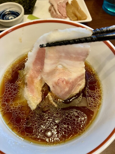 いよいよつけ汁に麺を入れて食べると、濃いめの醤油とよく馴染み、美味いラーメンに仕上がってツルツルっと口に入っていく。