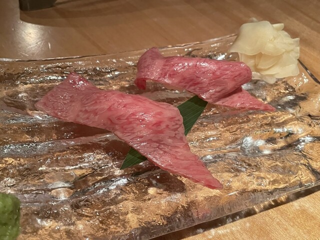 本日の特上握りは、和牛を艶やかに炙った握り。とろける脂が美味しすぎて、お口の中にずっと滞在させたい。