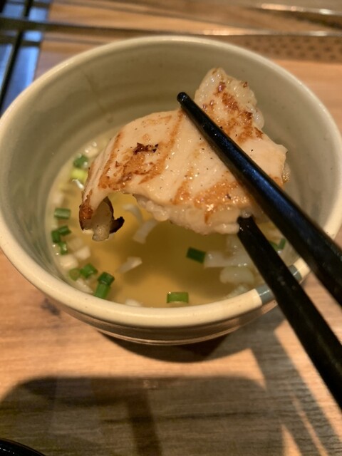 ピンクの皮をパリッと焼いてお出汁でいただく!