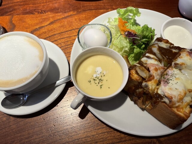 スープは塩味が効いたスープになっておりました。スペシャルモーニングの厚切りチーズトーストはカレーペーストが塗ってあり、本当に厚切りでございました。使っていた食パンはキメが細かく美味しかったデス。チキンも1個100円なのに、立派な唐揚げでした。