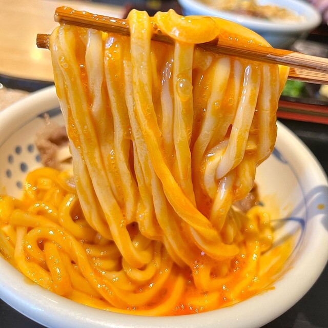 濃厚でうどんと甘辛いお肉とベストマッチで