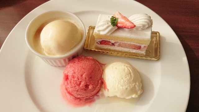 ラストデザート:苺ショート、パイナップル、アメリカン