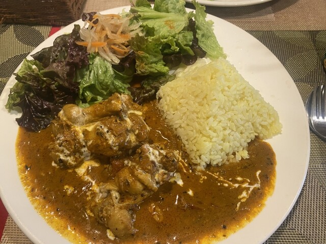 雰囲気のある内装と親しみやすいご主人の作るスパイスカレー。ホットチキンカレー1,200円を注文。本当に美味しかった!骨付き鶏が3本入っていて、フォークでポロッとお肉が外れます。ひとくち食べるとスパイスの香りと味で、これはヤミツキになりそう。付け合せのサラダに卓上のシーソルトとオリジナルの粉末(香味野菜を砕いたもの。ご主人が教えてくれたけどなるほど〜)をかけるとさらに美味しい。シーソルトはイタリアのコルシカ島のものだそう。カレー大好きで色々な店で食べてきましたが、わたしのベストスリーに入るお店です。家から少し遠いけど、また絶対来ます!