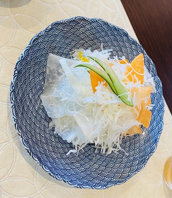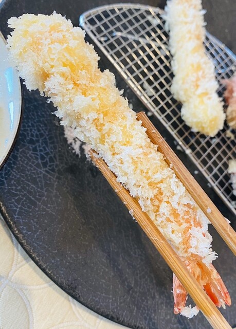 「天使の海老、ヒレ2ヶ、朝採れ野菜」2,700円税抜き ※残留さんと同じメニューと思われますが、この短期間で価格が変わっております。オープンしたばかりなので試行錯誤、より良き方向に向いていると思われます。ソースの辛口、甘口を聞かれ、唐辛子の辛口でなくパイナップルベースの甘口をチョイス、表にも書いてありましたが、こちらのお店は揚げ方が特殊な為、お時間がかかるようです。お含み置きを…参考までに提供の時間を書いておきます。定食には小鉢、サラダ、ご飯、汁物、漬け物、デザートが付いております。