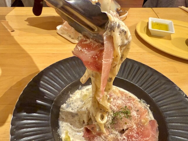 ◆生パスタ 生ハムとトリュフとマッシュルームのソース