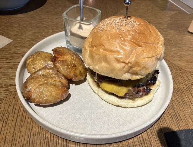 ディルが刻まれたソースとスマッシュポテトが熱々で食べごたえ大