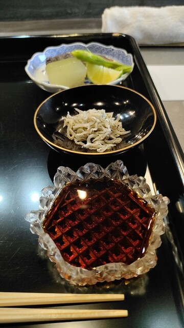 鱧は骨切り後、塩水に一晩浸けているそうで何もつけずにそのままいただきます。