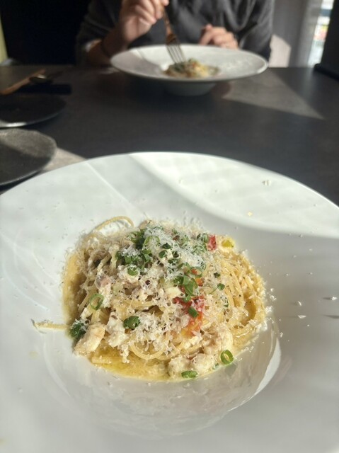 チーズと黒胡椒の効いたカチョエペペですが魚の出汁も閉じ込められた風味豊かなパスタ!