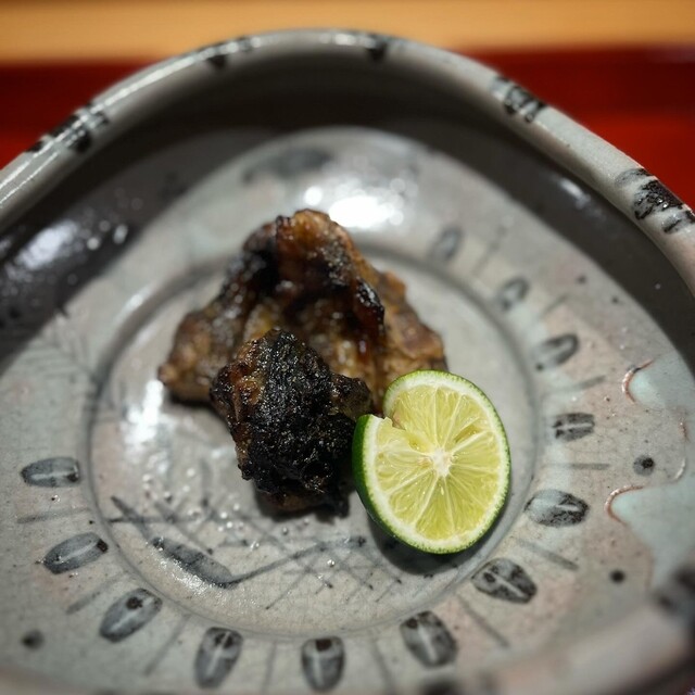 すっぽんは後ろ足の付け根の部位で、しっかりと脂のありジューシー。にゅるっとコラーゲンぽいのがあるのもまたすっぽんらしい。