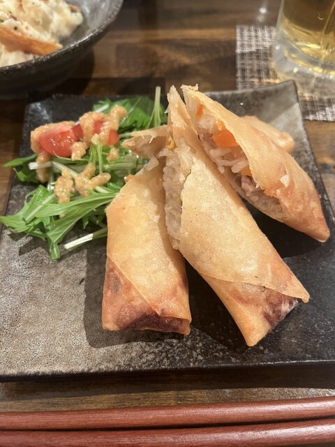 れんこんの挟み揚げと春巻きをハーフで。1人前にしていただけるのは、とてもありがたい!続いてもつ煮。味噌がたまらん。