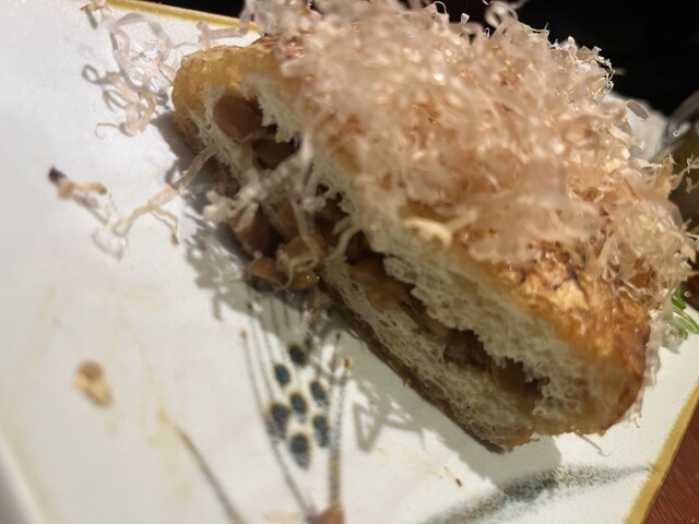 刺身・串・肉・銀杏・厚揚げ・ピザ…ビールから始まり、田酒をいただく。