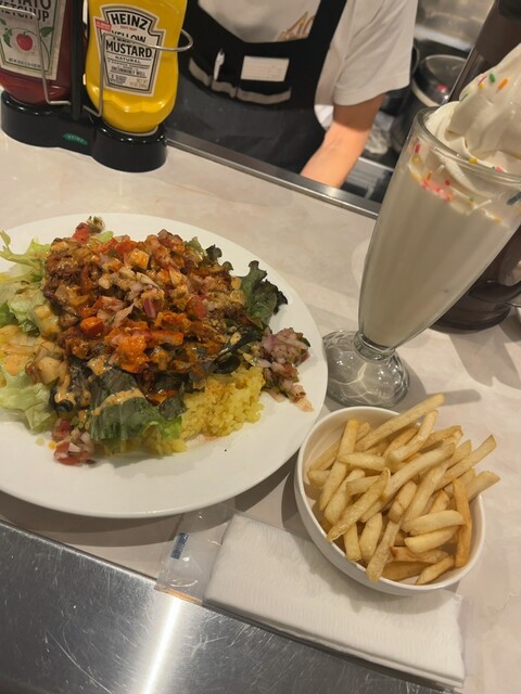トリプルチーズバーガー、ブリトー、プルドポークライス、プルドポークサンドイッチ…とバラバラだったけど、一緒にでできてありがたい。