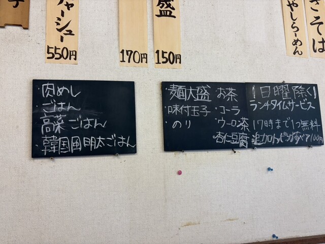 ランチタイムは、肉めしや明太ごはん、トッピング類などから一つサービスで選べます。