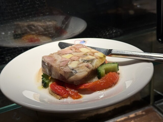 → 豚の頭部(主に耳、頬肉、舌など)を煮込んでゼラチン質で固めたテリーヌの一種