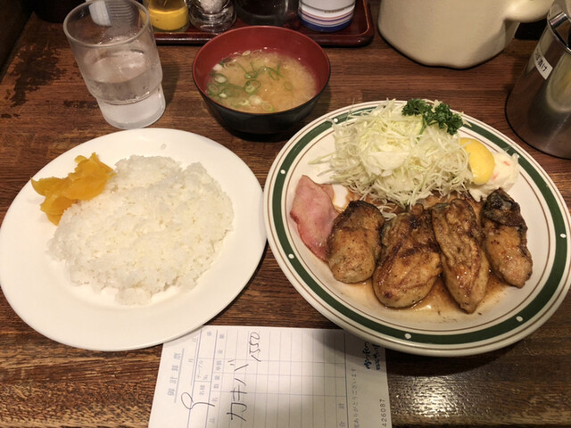 いつも長蛇の列が出来てるお店なのでなかなか入店ることができませんでしたが、今日は意を決っして開店前に並んで何とか入店することが出来ました、そして今回は冬季限定の牡蠣バター焼き定食をいただきました。