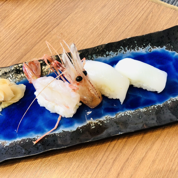 それと単品でいかとエビの握りも